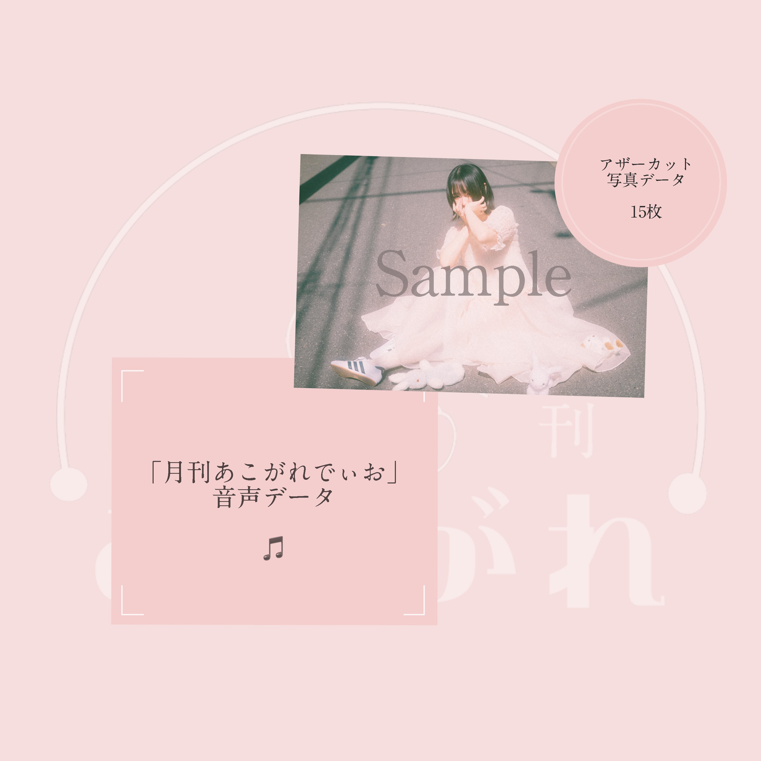 豊富なアザーカットフォトデータに加え、喫茶店訪問と街歩きの感想や近況報告の音声日記ラジオ番組〈月刊あこがれでぃお〉のボイスデータが聞けるデータセットの販売ページです。